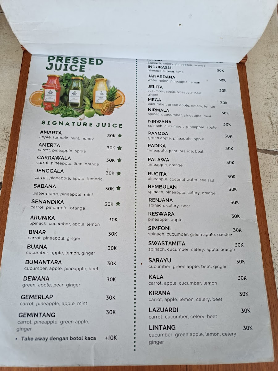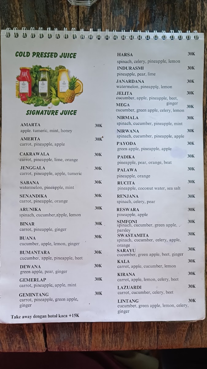 “ Had breakfast here, I really loves the vibes! It's so homey near rice field. Their specialty is cold pressed juice; I ordered Amarta (apple, tumeric, mint, honey) and it was really good. Will come back again later, for sure. ”