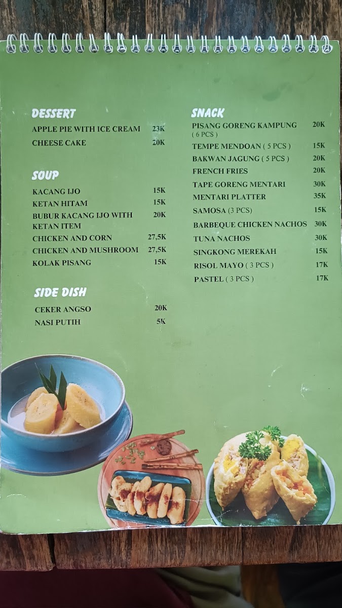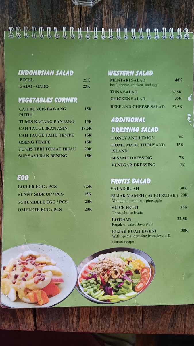 “ When nasi soto for breakfast is way too much, this spot is worth to try. We ordered cold press juice (freshly squeezed when ordered), salad, bubur kacang ijo + ketan item, pisang goreng kampung. The food was good, price was affordable, the area was not too spacious but the ambience was very nice with paddy field surrounding. ”